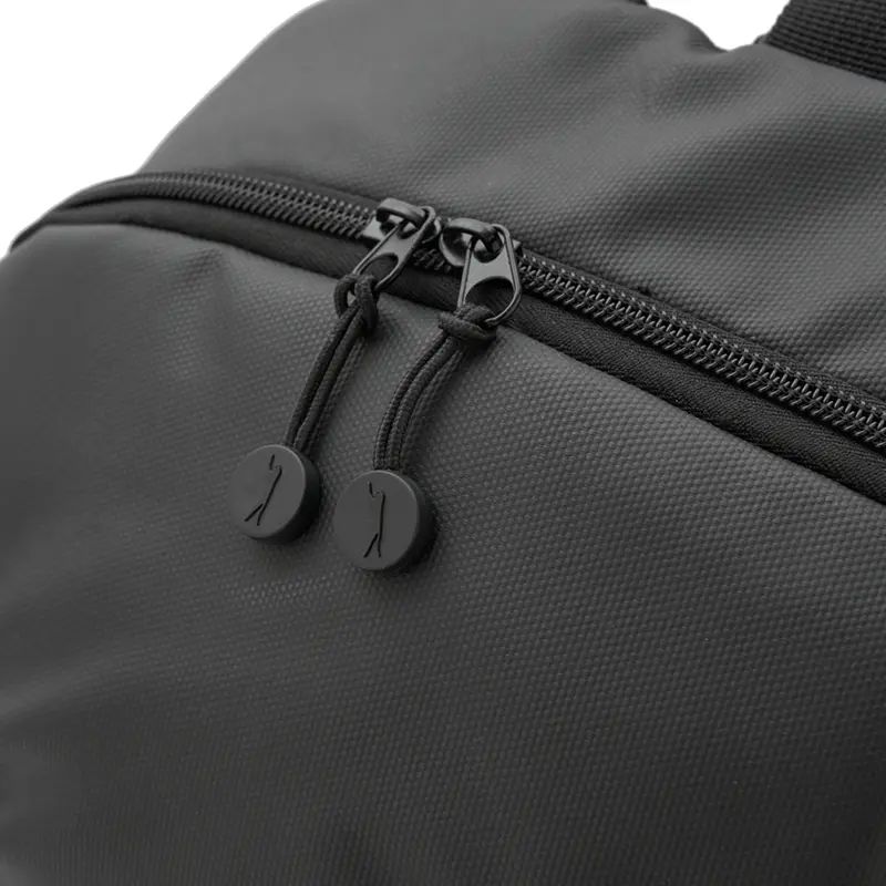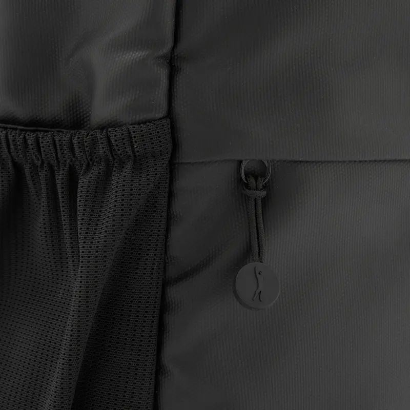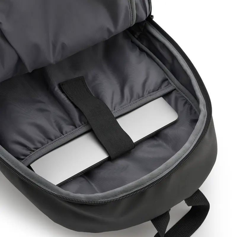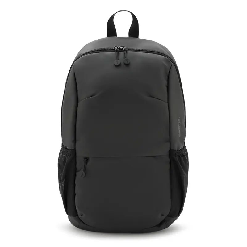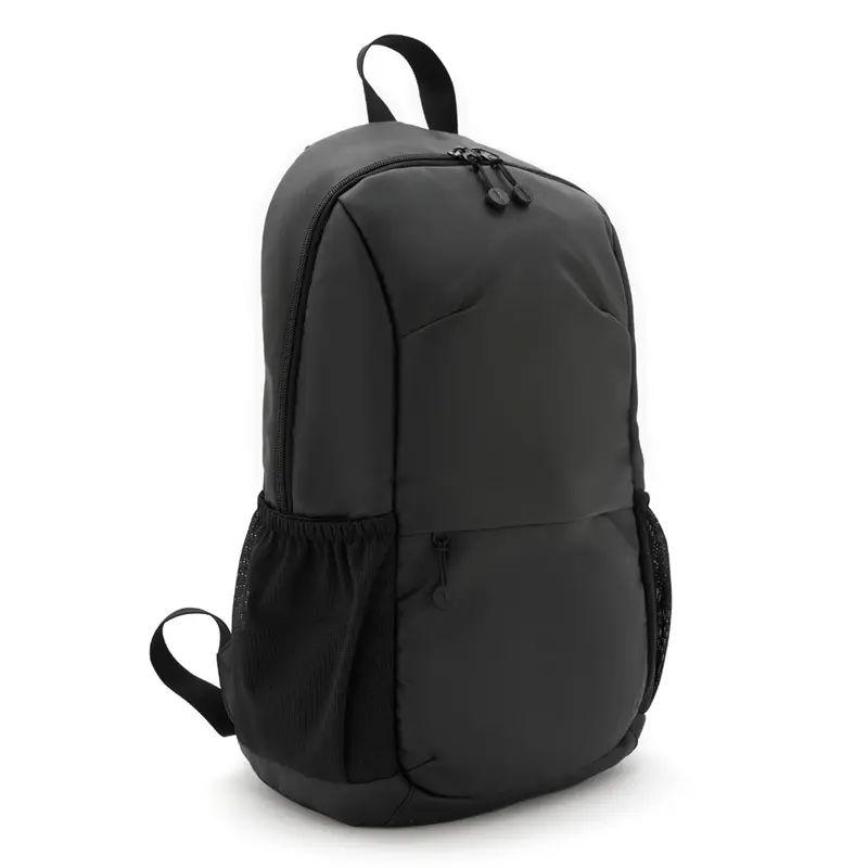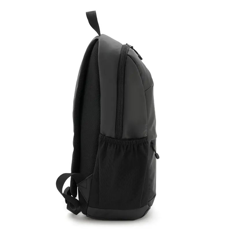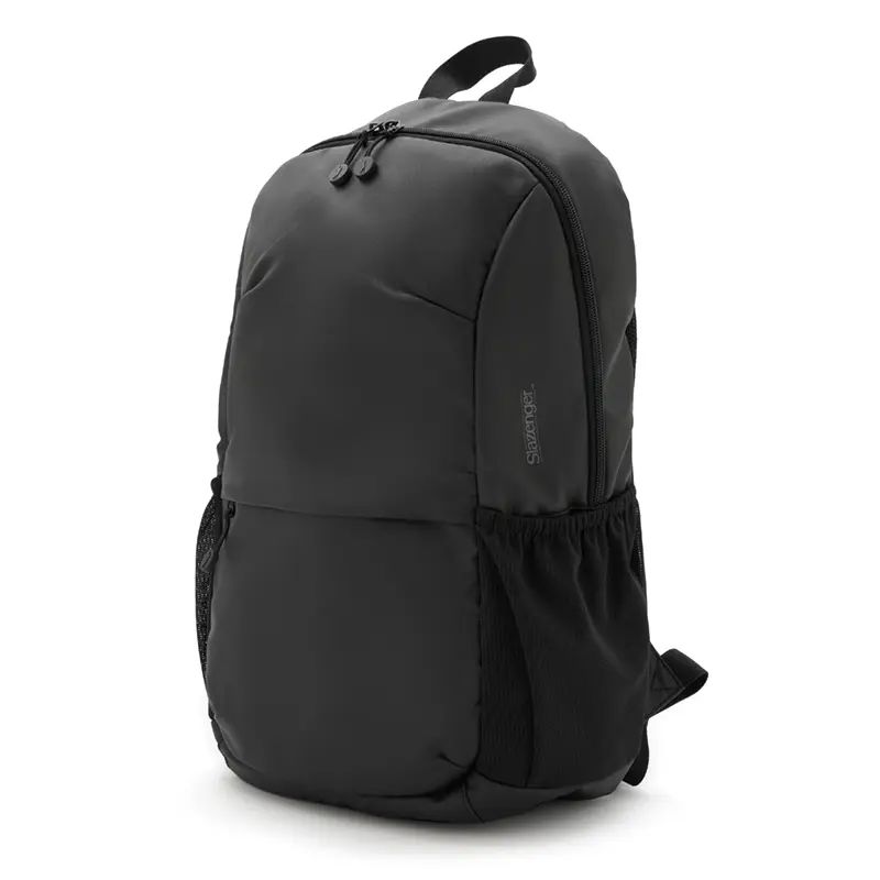 Mochila de color negro fabricada en material PU con espuma de PE y forro completo. Cuenta con un bolsillo frontal, compartimento interno para computadora con correa elástica y velcro, y dos bolsillos laterales de malla. Ideal para quienes necesitan una mochila funcional y resistente para transportar su computadora y pertenencias en sus actividades diarias. Medidas: 45 x 27 x 13 cm. Slazenger.