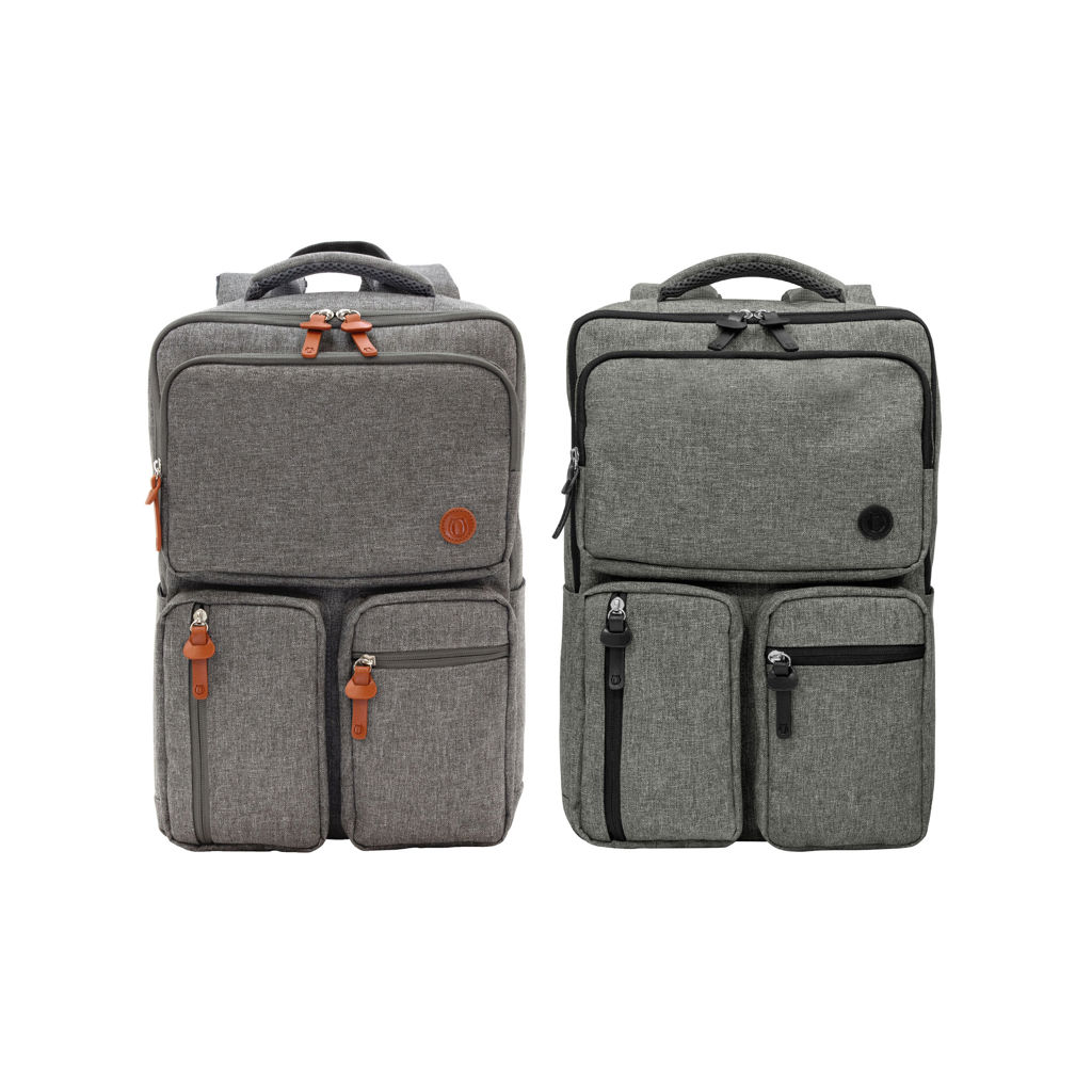 27 x 41 x 10 cm. Capacidad 12 litros. Poliéster 600D Bicolor + Nylon + Poliuretano. Mochila portanotebook de hasta 15,6 pulgadas. Compartimento principal con bolsillos acolchados para notebook y tablet con cinta elástica de velcro. 3 bolsillos delanteros con cierre y 2 bolsillos laterales. Manija y correas acolchadas, hebillas plásticas y cierres metálicos con tiradores en poliuretano. Espalda acolchada. Incluye tira para sujetar la mochila en la manija extensible de un equipaje de mano.
