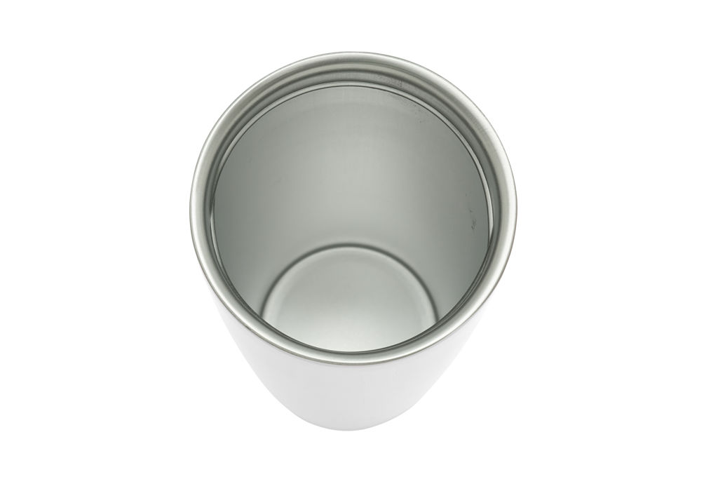 Ø 6 x 19,5 cm. Capacidad 350 ml. Acero inoxidable. Mug doble pared Interior acero 304 y exterior acero 201. Tapa a rosca, botón para abrir y cerrar. Lazo para sujetar en la muñeca. Base antideslizante. Mantiene las bebidas frías o calientes por más tiempo. Presentación en caja de regalo.