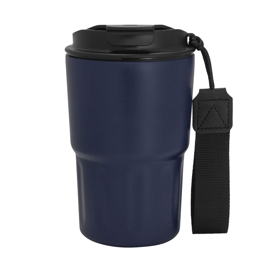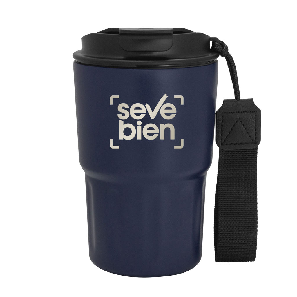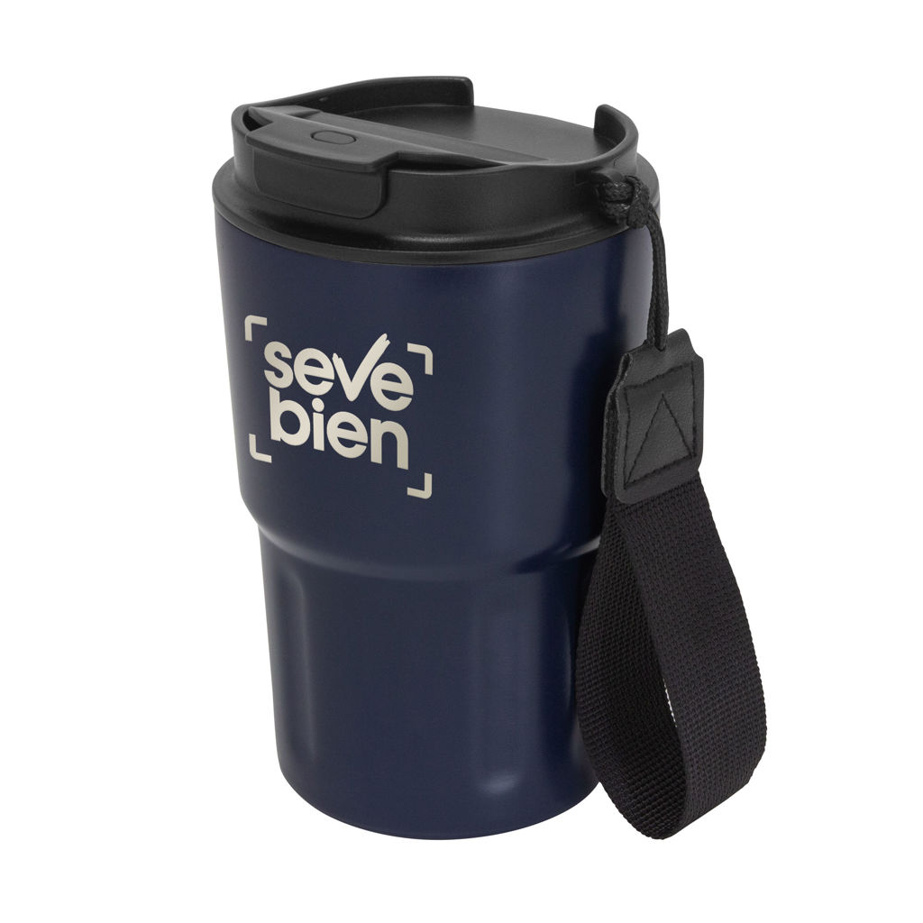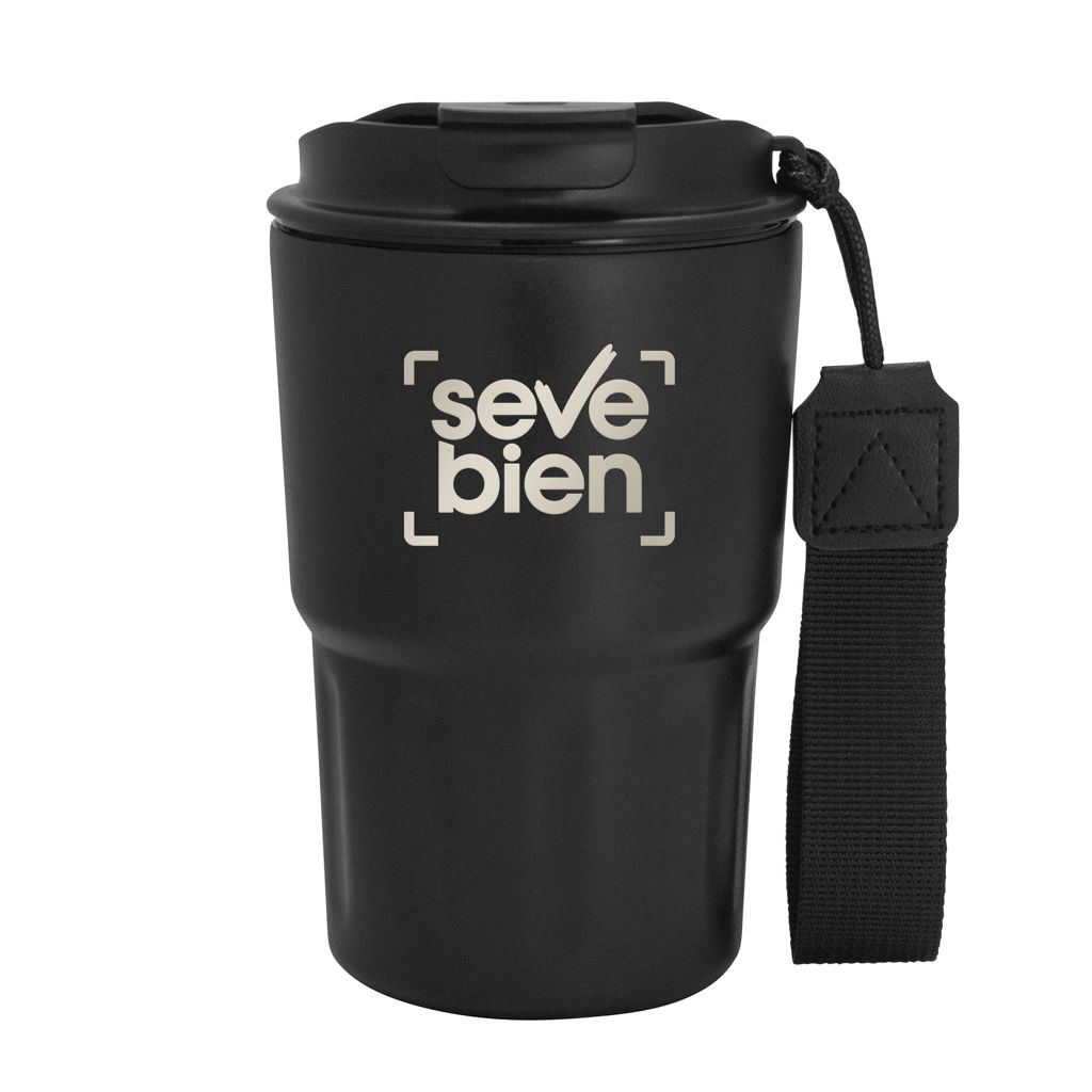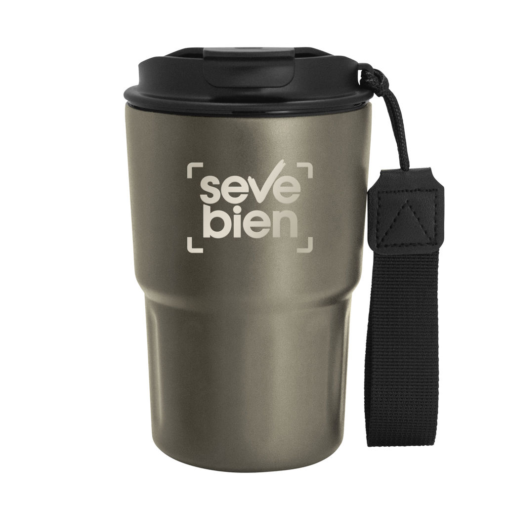 Disfruta cada sorbo, donde sea.Mug doble pared, sellado al vacío. Mug con aislamiento térmico. Tecnología vacuum. Interior en acero 304 y exterior en acero 201. Tapa de polipropileno con anillo de silicona y correa de poliéster en color negro. Pintura acabado mate. Mantiene hasta 8 hs la temperatura de las bebidas calientes y hasta 12 hs la de las bebidas frías. Medidas: Ø 8,8 cm x 14,5 cm.