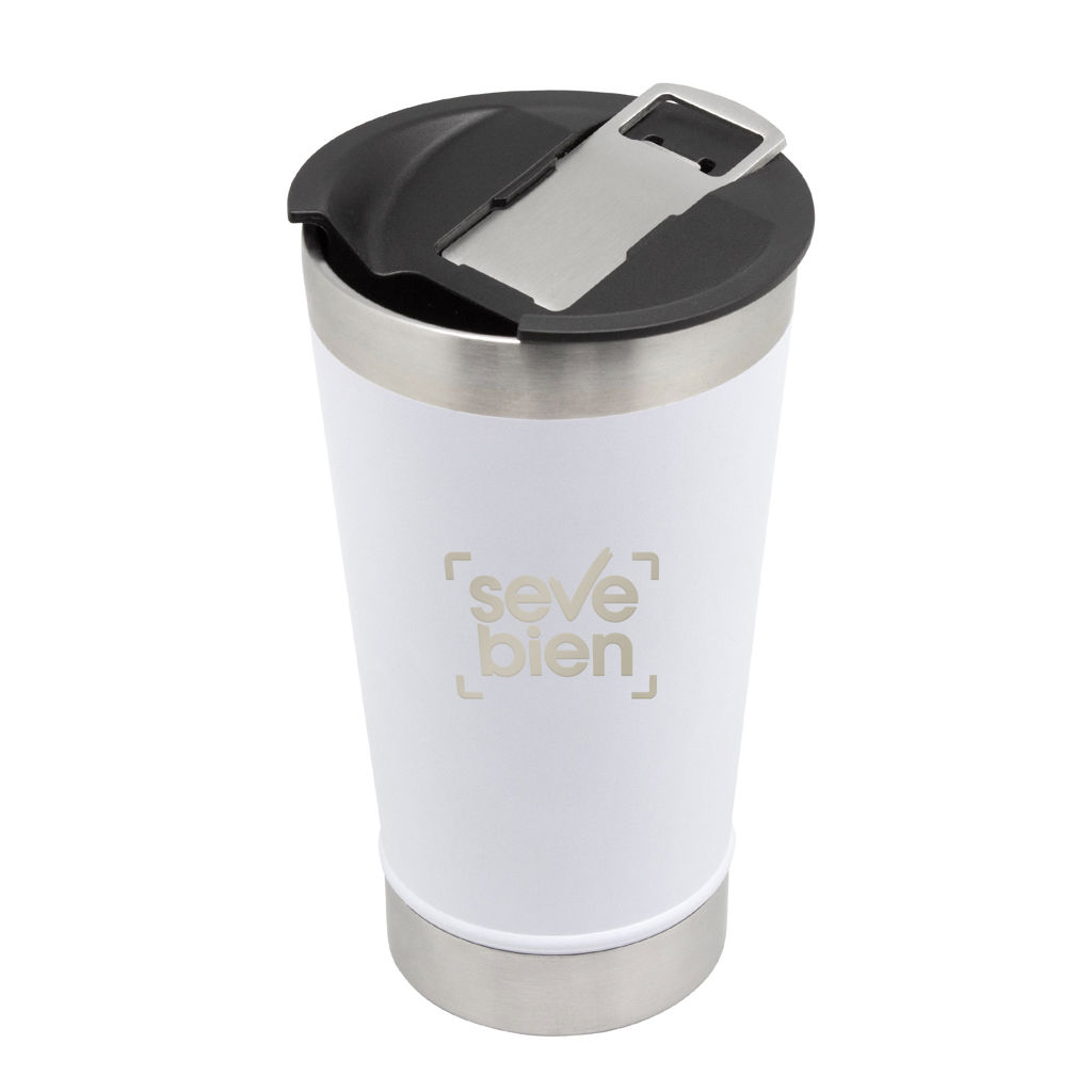 Disfruta de tus bebidas frías o calientes con estilo.Mug doble pared, sellado al vacío. Interior en acero 304 y exterior en acero 201. Tapa plástica con boca ancha a presión con anillo de silicona. incluye abridor de botellas en acero inoxidable 430. Pintura exterior con acabado mate. Mantiene hasta 6 hs la temperatura de las bebidas calientes y hasta 10 hs la de las bebidas frías. Medidas: Ø 7,5 x 17 cm.