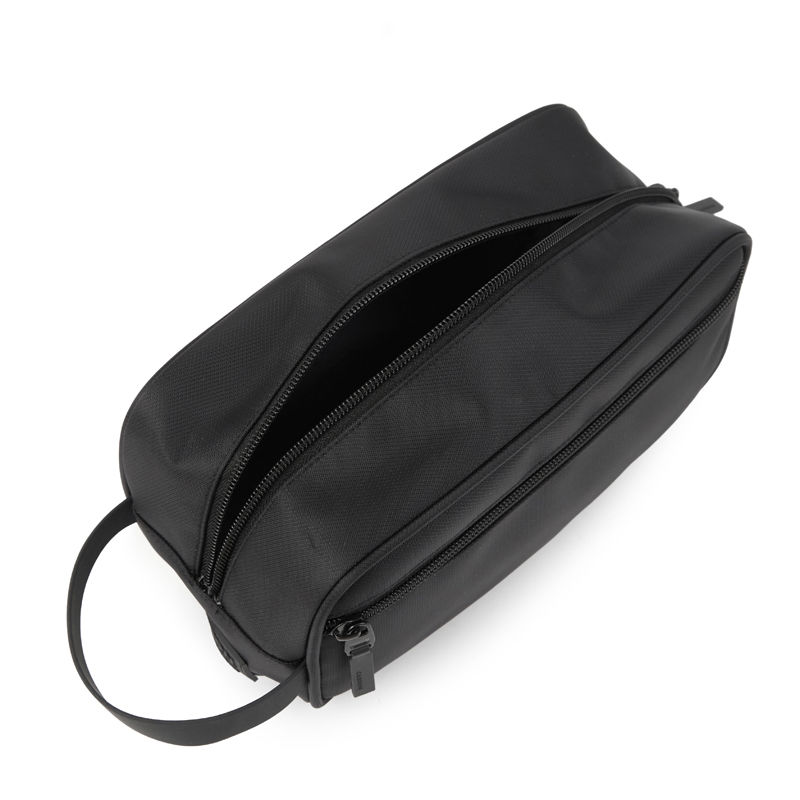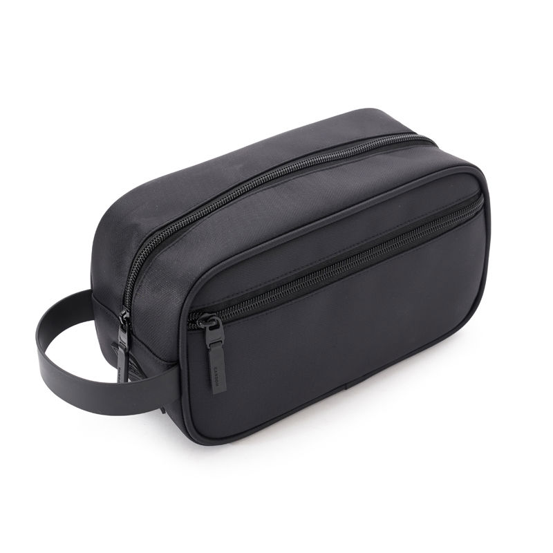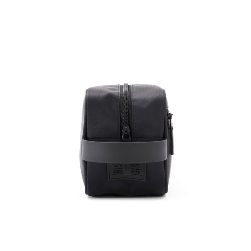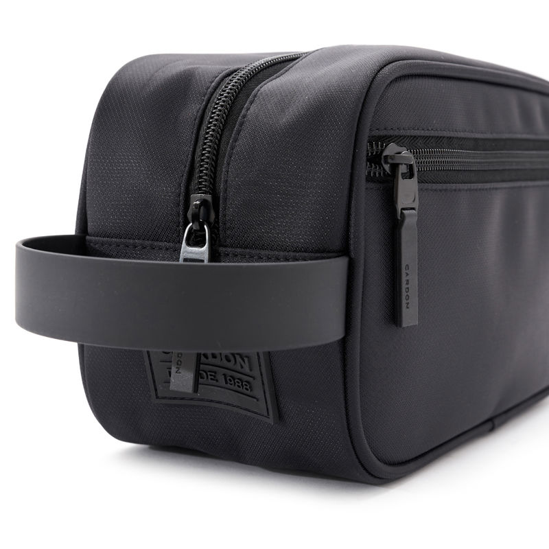 Neceser confeccionado en Polyester, con cinta de agarre para facilitar su transporte, cierres en tono y cabezal negro. Cuenta con un compartimiento y un bolsillo frontal con cierre. Interior forrado en gris pantone. Ideal para viajes o para mantener los cosméticos y objetos personales organizados y a mano en casa. Dimensiones: 14 x 25 x 11 cm (Alto x Longitud x Ancho). Capacidad: 3L. Cardon.