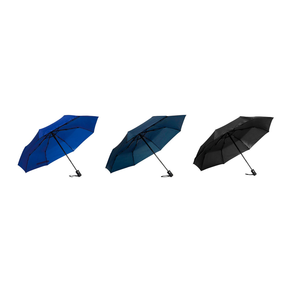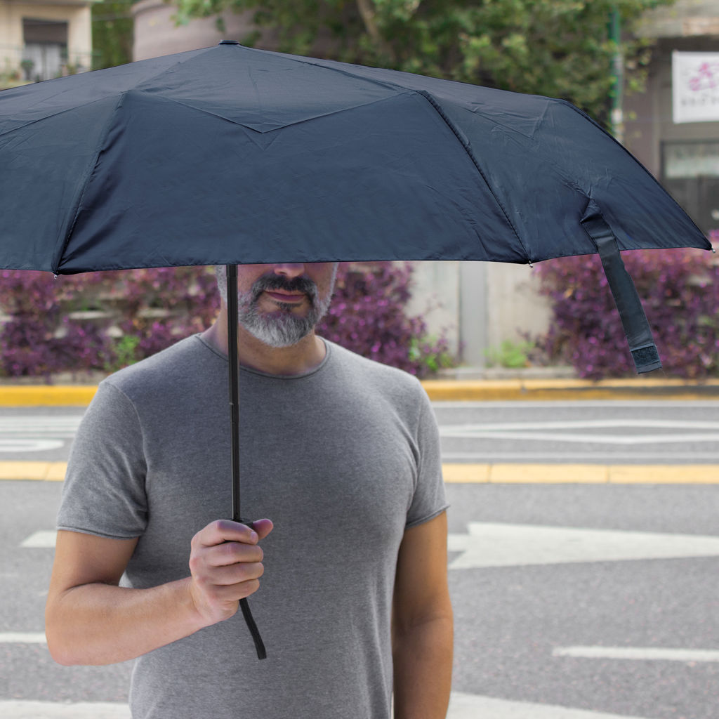 Práctico y fácil de llevar.Paraguas APERTURA Y CIERRE AUTOMÁTICO. Eje y varillas metálicas. Mango de plástico engomado negro con correa cordón color negro. Botón a presión. Cierre con correa de velcro.Medidas: Ø 98 cm. 8 gajos. Ancho gajo 37 cm. Largo cerrado 24 cm. Largo abierto 54 cm.