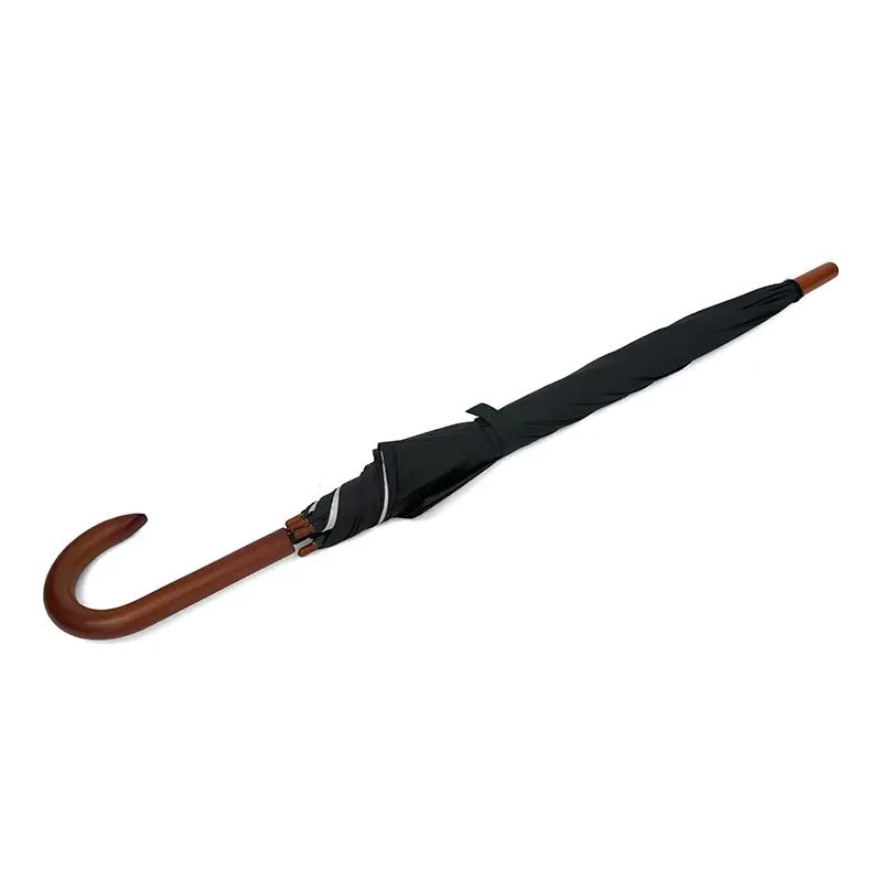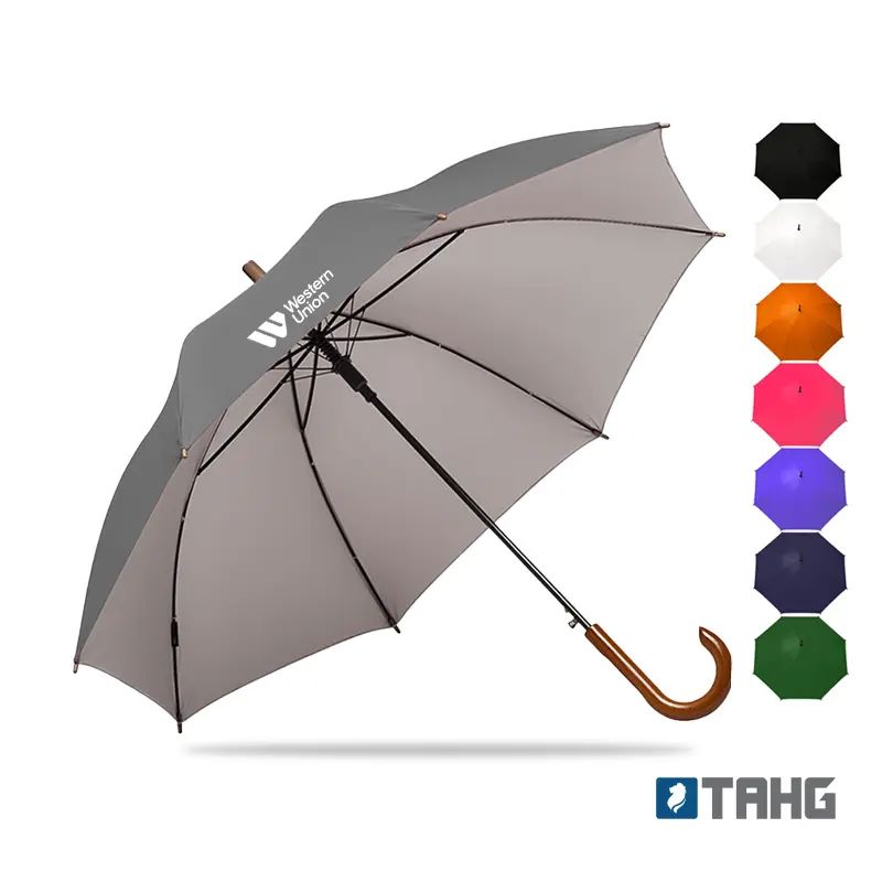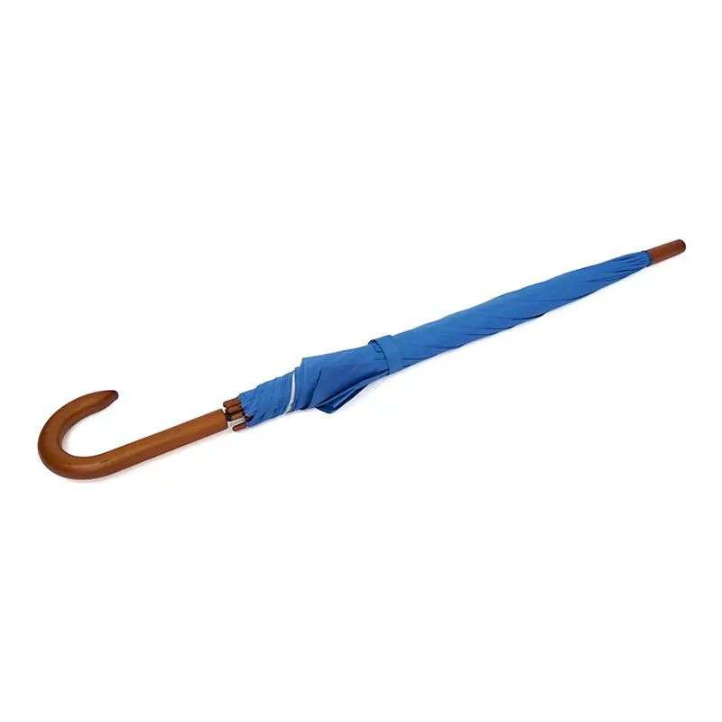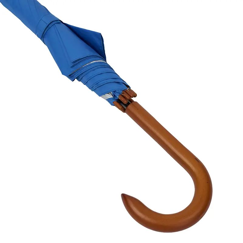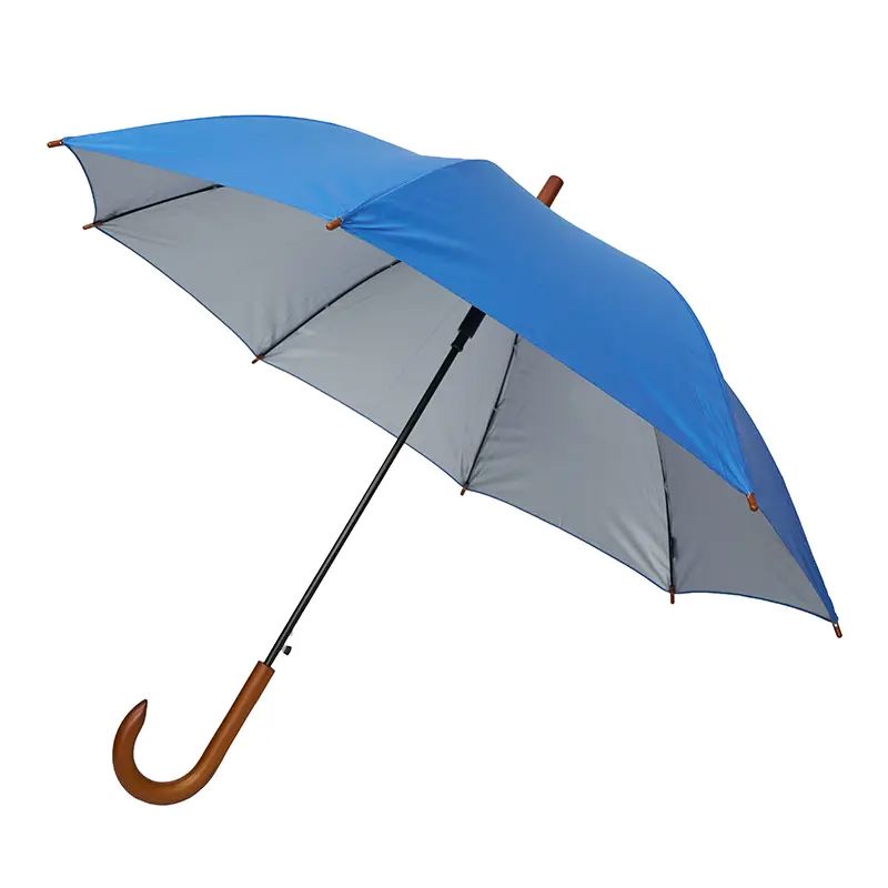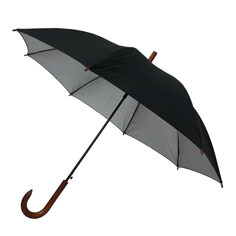 Paraguas street de 8 gajos con mango curvo de madera y estructura metálica negra. Con sistema de apertura automática. Tela de interior silver combinada con exterior en colores.