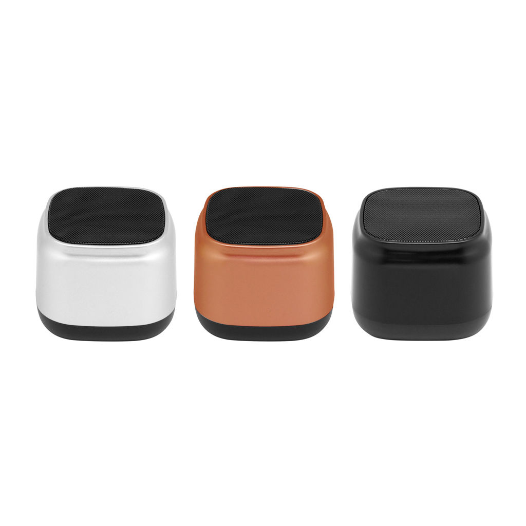 Sonido potente y estilo modernoParlante bluetooth. Posee botonera de silicona en la base y malla metálica negra en la parte superior. La base del parlante es antideslizante. Micrófono incorporado. Permite recibir llamadas. Cable de carga y conexión USB tipo C color negro. Medidas: 7 x 7 x 5,8 cm.