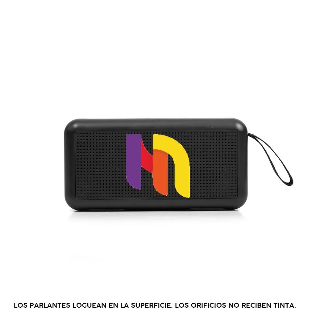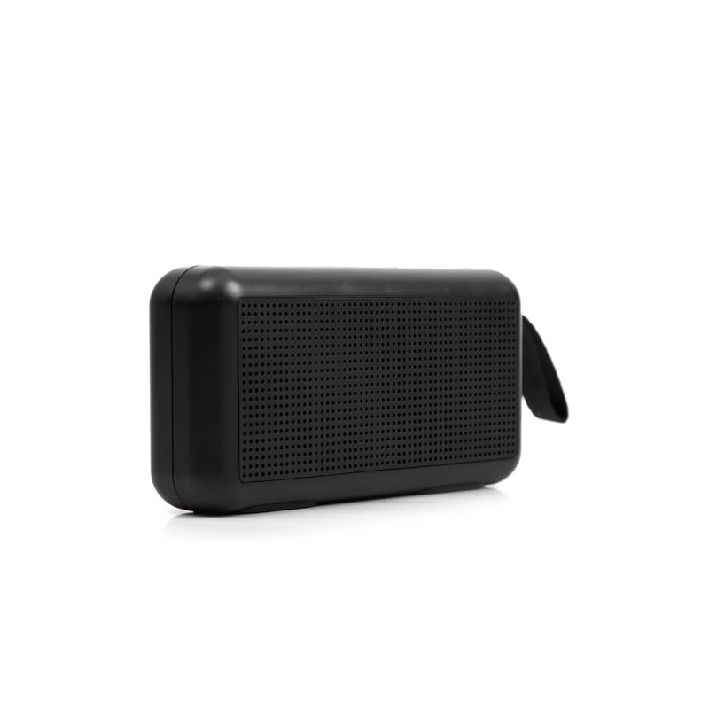Parlante portátil con tecnología Bluetooth, micrófono manos libres y modo radio FM, realizado en ABS. Incluye ranura para lectura de tarjetas de memoria micro SD. | Batería de 500mAh | Potencia del parlante: 3W | Conexión5V/300mA | Peso: 160g | Medidas120 x 30 x 60mm | Tahg