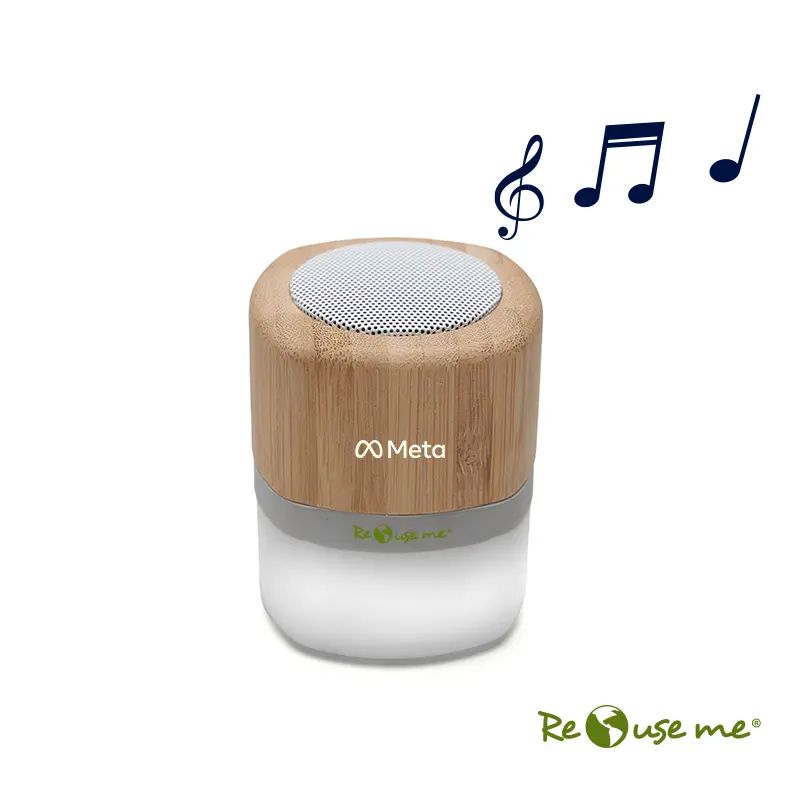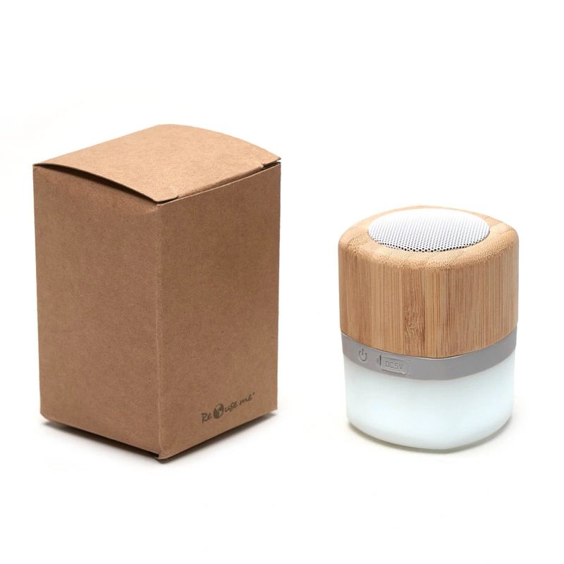 Parlante portátil con tecnología Bluetooth. Realizado en combinación de ABS con Silicona y bamboo, con iluminación en la base. Características técnicas: Batería de 300mAh | Poder del parlante: 3W | Frecuencia: 200Hz-20KHz. Conexión: 5V / 500mA | Distancia de alcance: 10 Metros | Peso 150gr | Medidas: 6 x 6 x 7,5 cm.