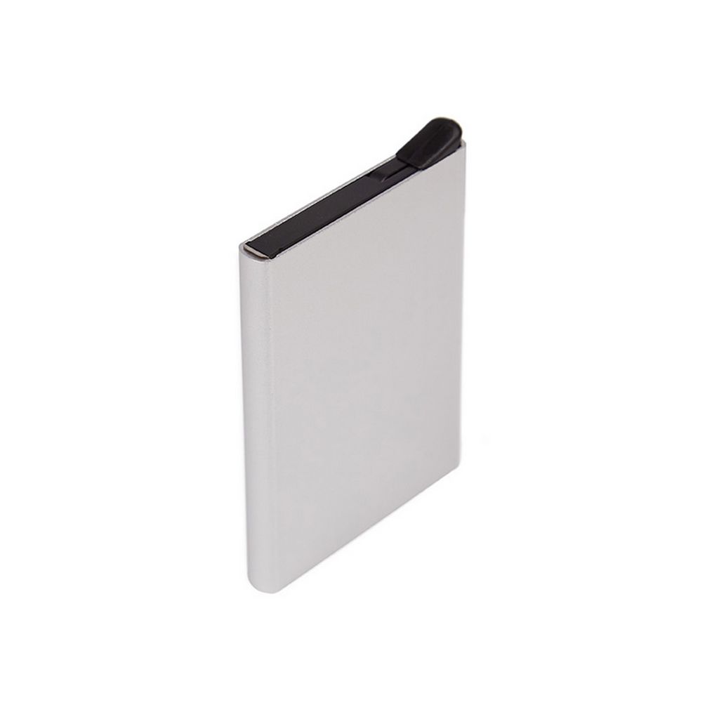 Tarjetero de aluminio diseñado para evitar lectores RFID que puedan poner en peligro la seguridad de tu documentación, tarjetas de crédito o débito, información bancaria, licencias de conducir RFID u otro tipo de tarjetas RFID. Capacidad de hasta 6 tarjetas. Medidas: 9,3 x 6 cm. Tahg.