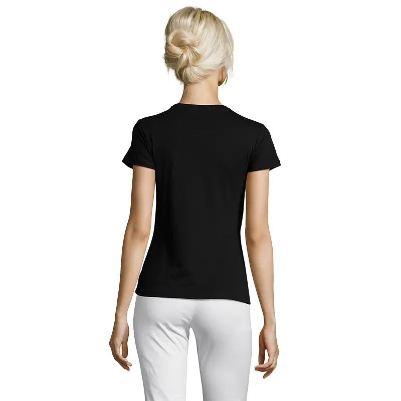 Remera de manga corta de corte entallado, confeccionada en Jersey de 150g, 100% algodón semi-peinado, con costuras laterales y cuello con tapacosturas.