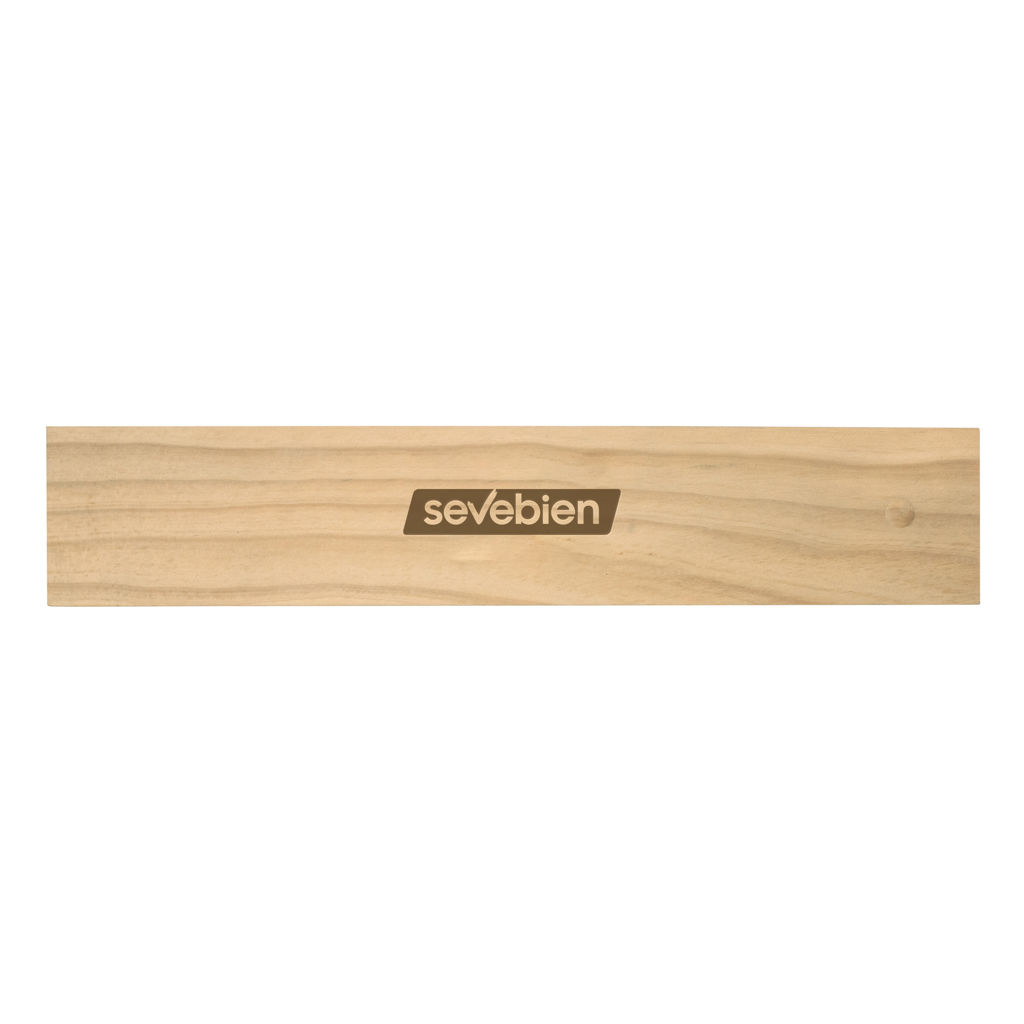 34 x 4,1 x 7,3 cm. Acero inoxidable y polipropileno + Madera. Juego de cuchilla y tenedor en caja de madera. Presentación en caja de regalo.