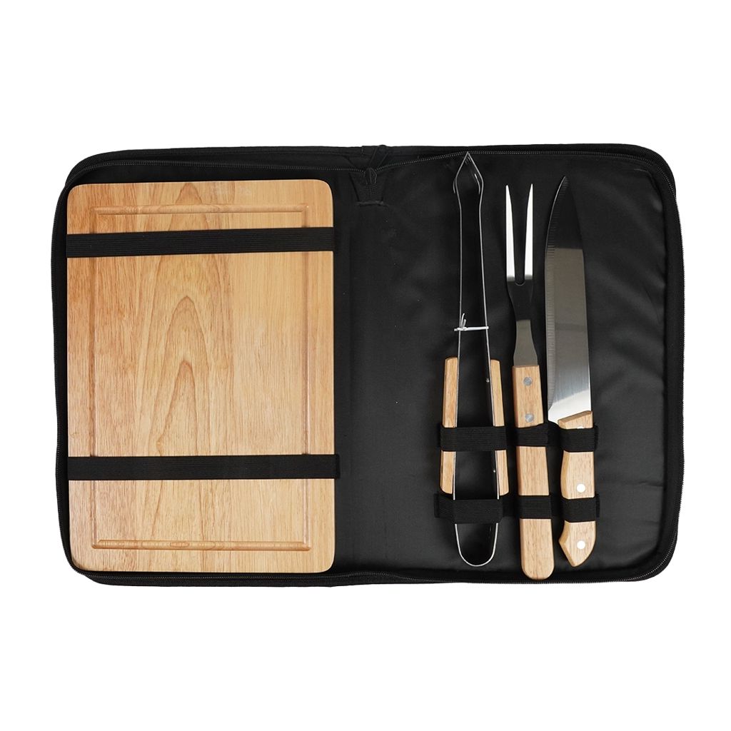 El Set BBQ Brasa es ideal para tus parrilladas y asados. Contiene: 1 tabla, 1 cuchillo, 1 tenedor y 1 pinza. Viene presentado en un estuche de poliéster de alta calidad, perfecto para almacenar y transportar tus utensilios. Tahg