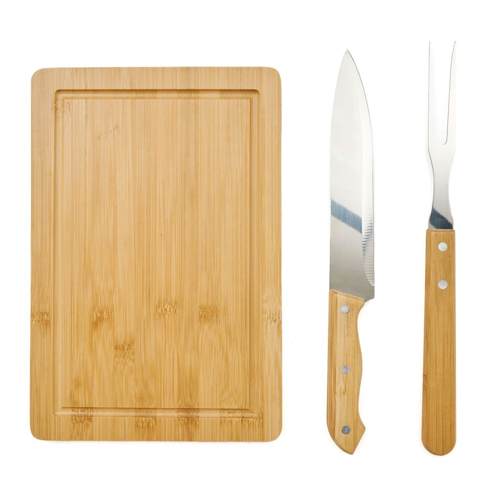 El set de asado Roti contiene: tenedor y cuchillo de 33 cm, ambos con mango de madera y, tabla de bamboo de 30 x 20 x 1,2 cm. Este set incluye todo lo que necesitas, ideal para los amantes del asado. Pampa Spirit