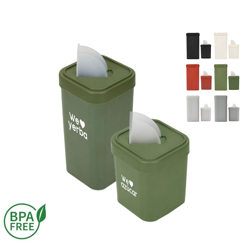 Set de yerbera y azucarera con diseño rectangular, hecho en poliestireno con pico vertedor en la tapa. Cuenta con Laterales con terminación texturada y lisa.
