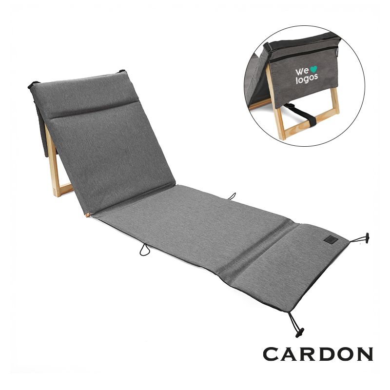 Silla Reposera plegable confeccionada en Polycanvas. El respaldo cuenta con un marco de madera, protegido con Cetol, que permite regular la inclinación, y con un bolsillo con cierre removible, pegado en velcro. También posee una correa regulable para transportarla fácilmente y elásticos en los extremos para cerrarla.