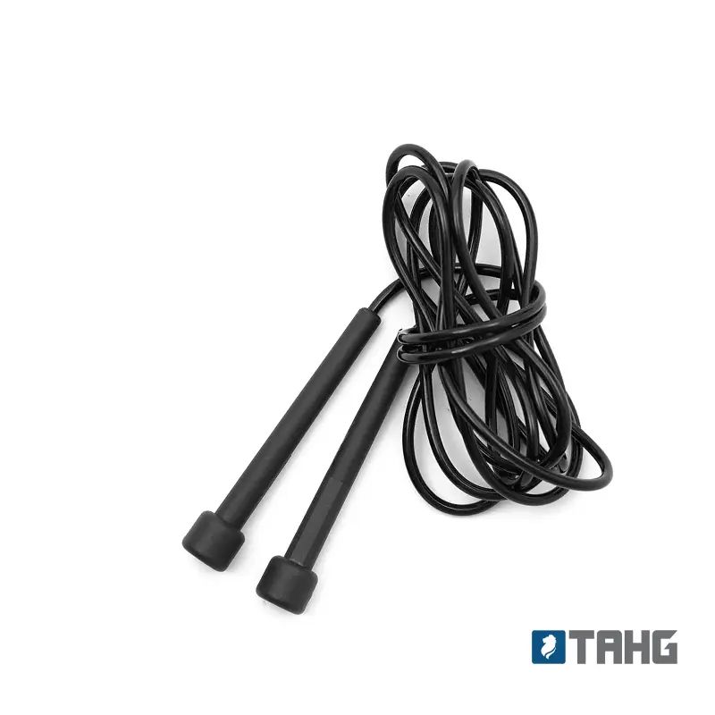 Soga de saltar fabricada en PVC (cuerda) y PP (agarre). Su largo de 2,6 metros se adapta a diferentes estaturas y niveles de entrenamiento.