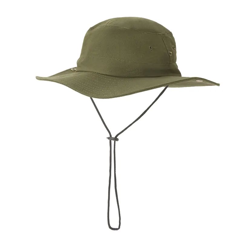 Sombrero cómodo y versátil para protección solar. Confeccionado en algodón 100% de alta calidad. Cuenta con ala ancha para mayor cobertura, ojales de ventilación, cordón ajustable para mayor seguridad y un diseño clásico disponible en varios colores. Ideal para actividades al aire libre como camping, pesca, caminatas o uso diario en días soleados.
