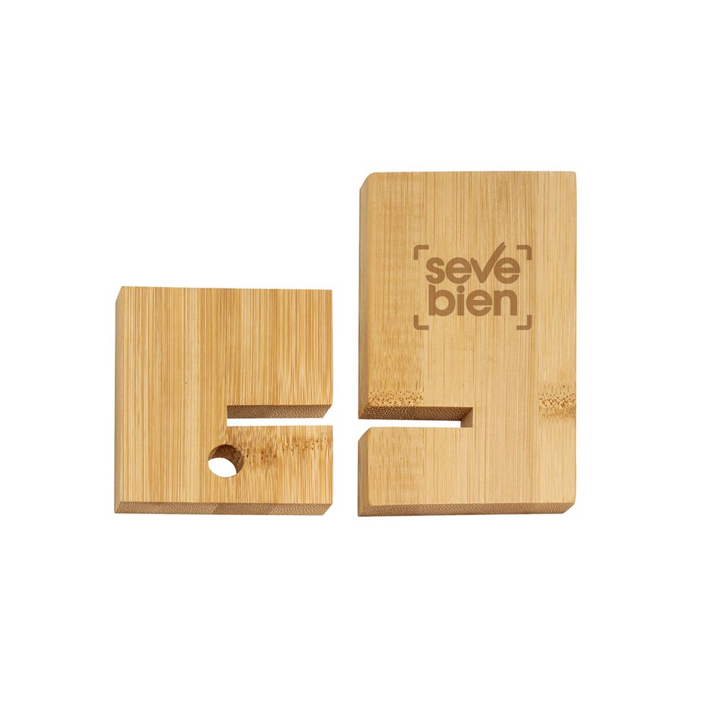 14 x 8 x 0.8 cm. Bambú. Soporte de escritorio para celular. Cuenta con orificio que permite el paso del cable para facilitar la carga del dispositivo. Práctico y transportable. Presentación en caja de regalo Kraft.