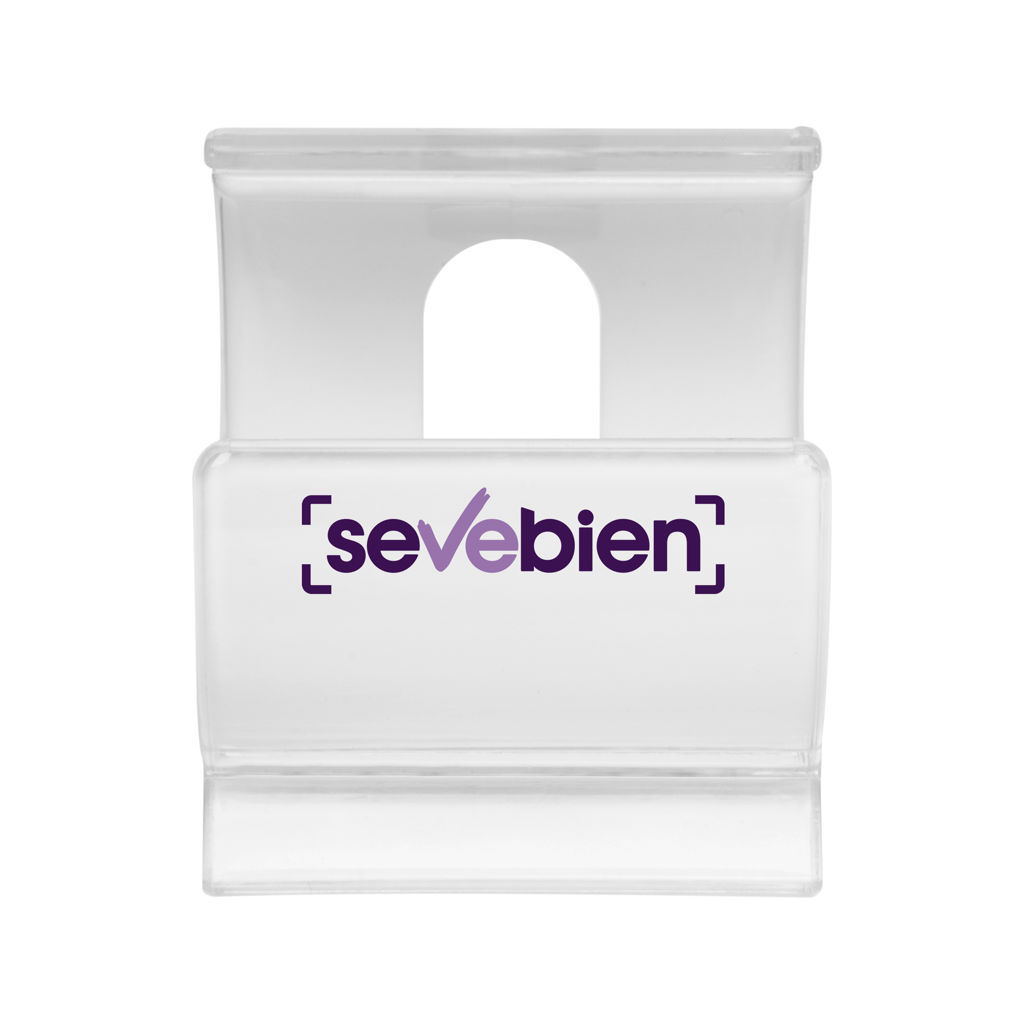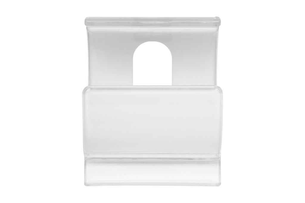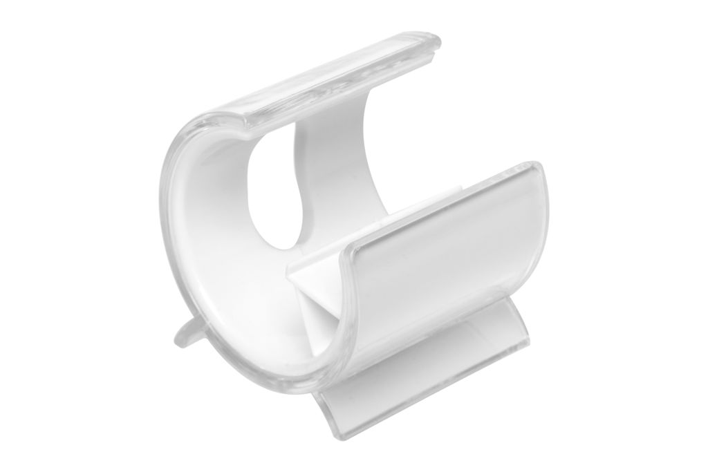Ø 5,5 x 5 cm. Plástico PS. Soporte para apoyar el celular. Plástico transparente en el exterior y Plástico blanco en el interior. El celular se apoya en el interior del soporte.