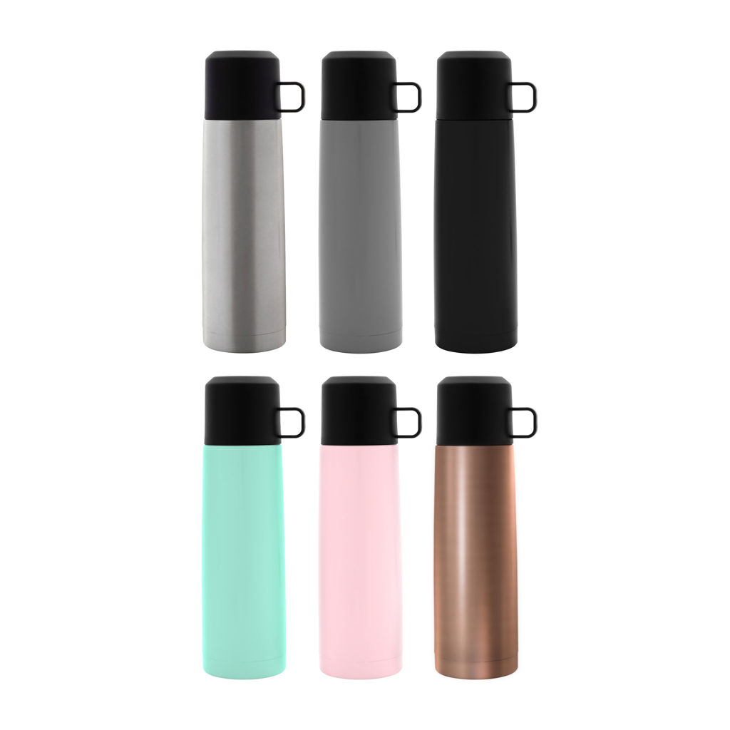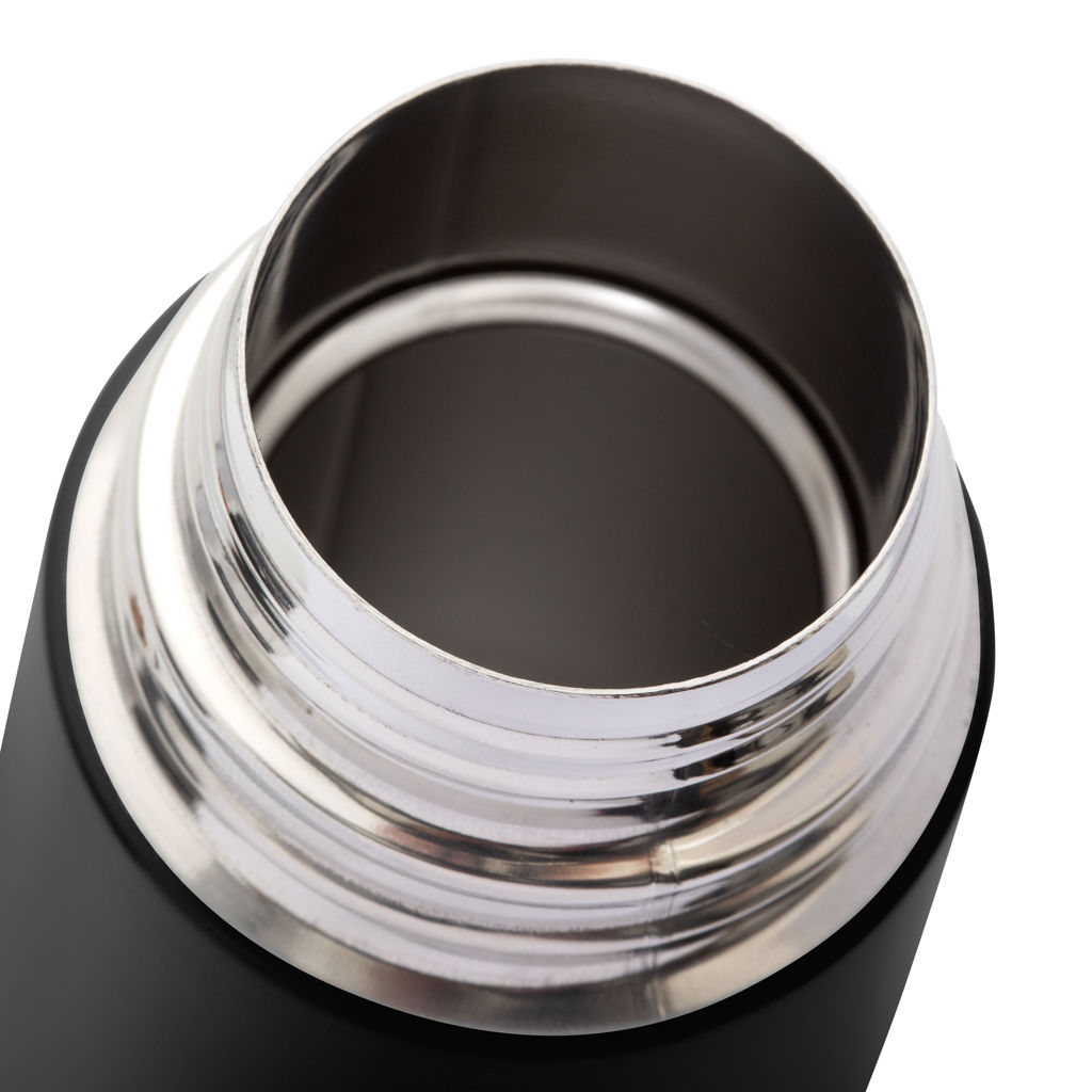 Disfruta de cada sorbo, caliente o frío.Termo con doble pared sellado al vacío. Tecnología vacuum. Acero inoxidable 304 interior / 201 exterior. Tapa y taza plásticas en color negro. Pintura acabado mate. Mantiene hasta 6 hs la temperatura de las bebidas calientes y hasta 10 hs la de las bebidas frías.Medidas: Ø 7 x 24 cm
