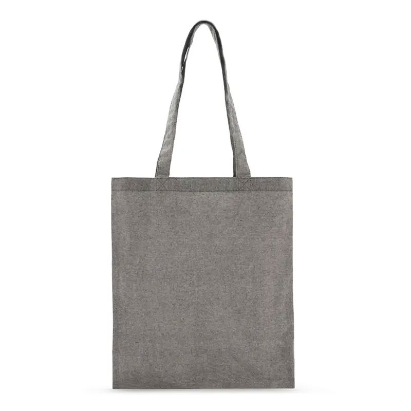 Tote bag fabricada en algodón reciclado de 140gsm en colores azul melange y gris melange.