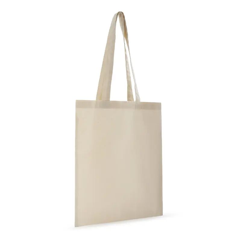 Tote bag fabricada en algodón recilcado de 140gsm, en color natural.
