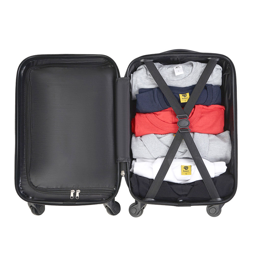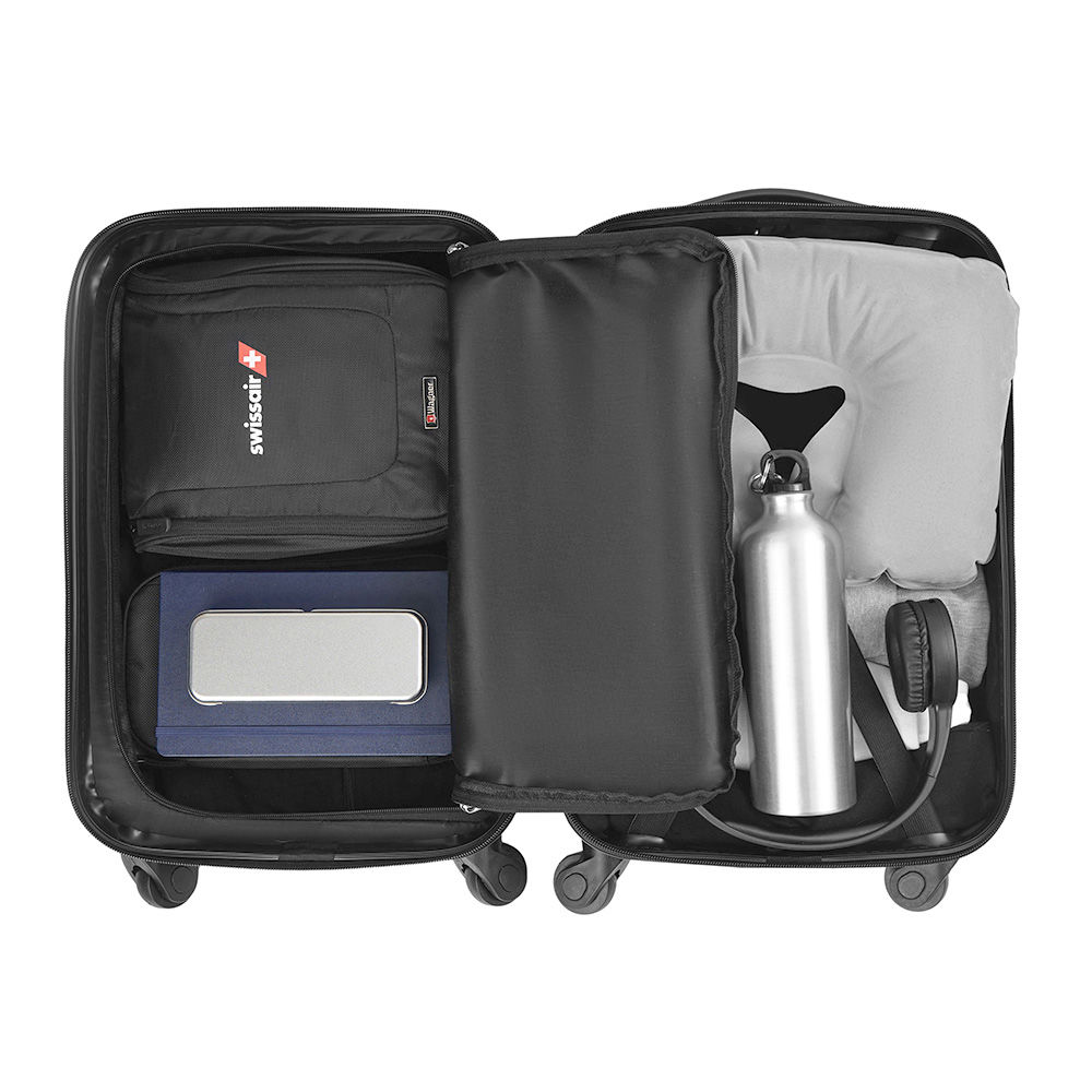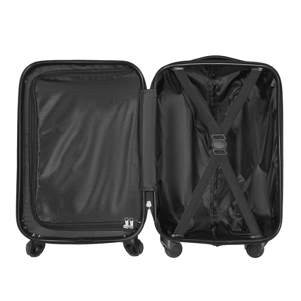 Trolley realizado en material ABS rígido. Manija regulable en altura, interior forrado, contiene tiras de compresión internas en uno de los módulos y en el otro división interna con cierre. Sistema de ruedas giratorias 360° reforzadas. Cierre con lock. Chapa frontal metálica para aplicar logo. Medidas: 22 x 31 x 51 cm. Foto iliustrativa, no incluye los productos que están en su interior. Fast Travel.